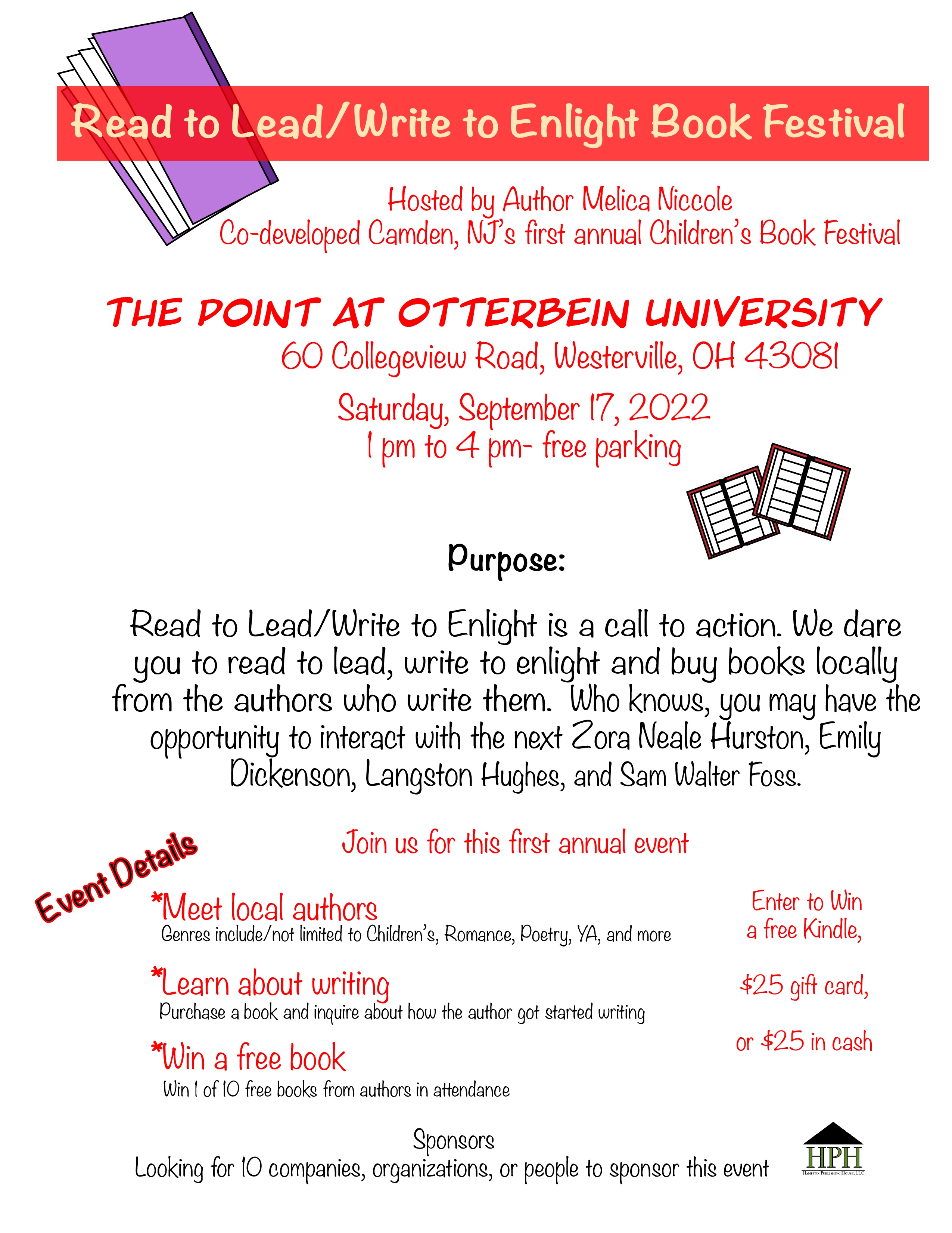 Read to Lead, Write to Enlight is a call to action. We dare you to Read to Lead, Write to Enlight and buy books locally. The event is geared toward spotlighting 7-10 local authors with the potential to also include 1-3 authors from other states. Authors will have the ability to sell their work, talk with attendees, and get the community engaged in reading, writing, and literacy activities.