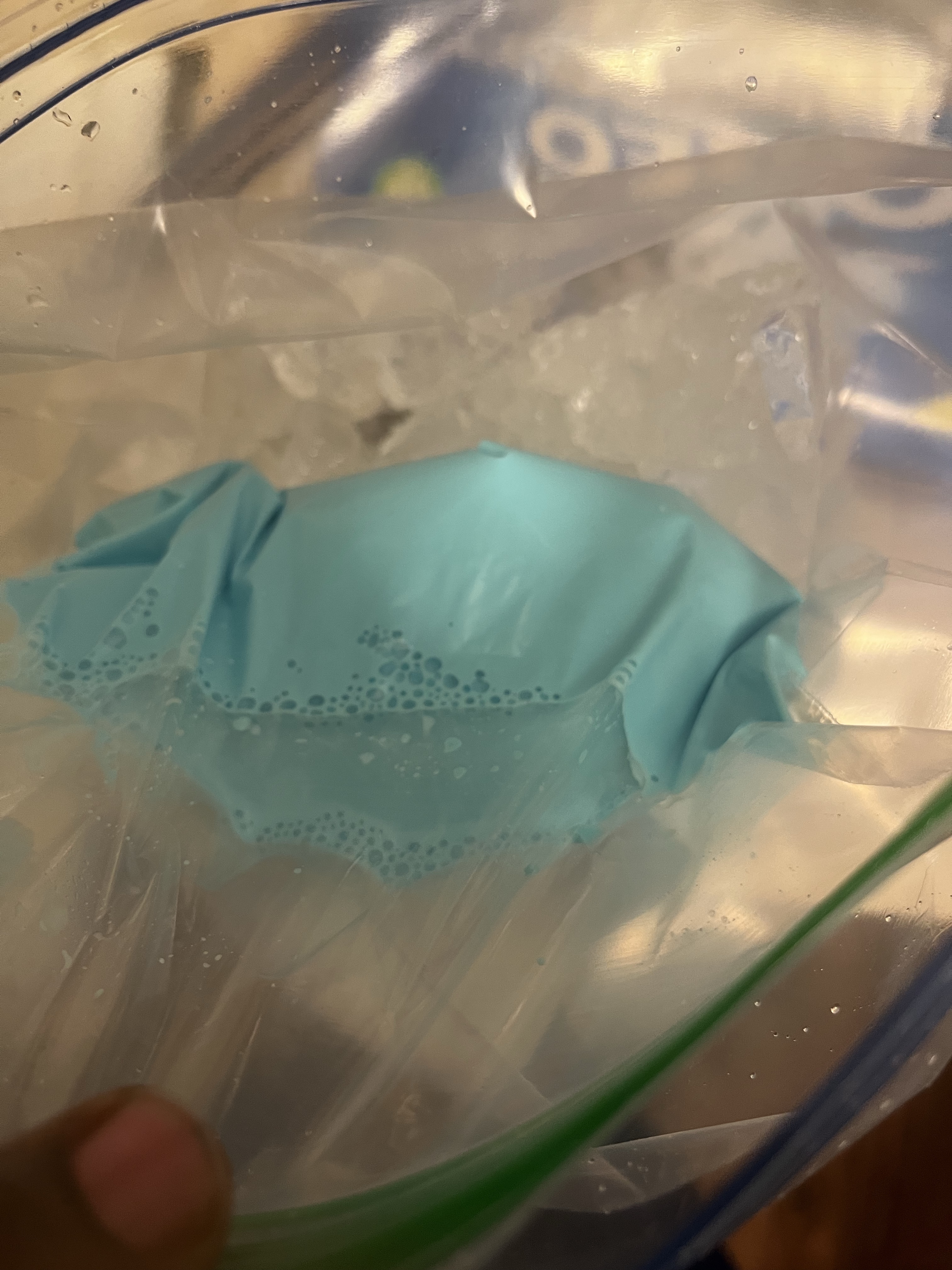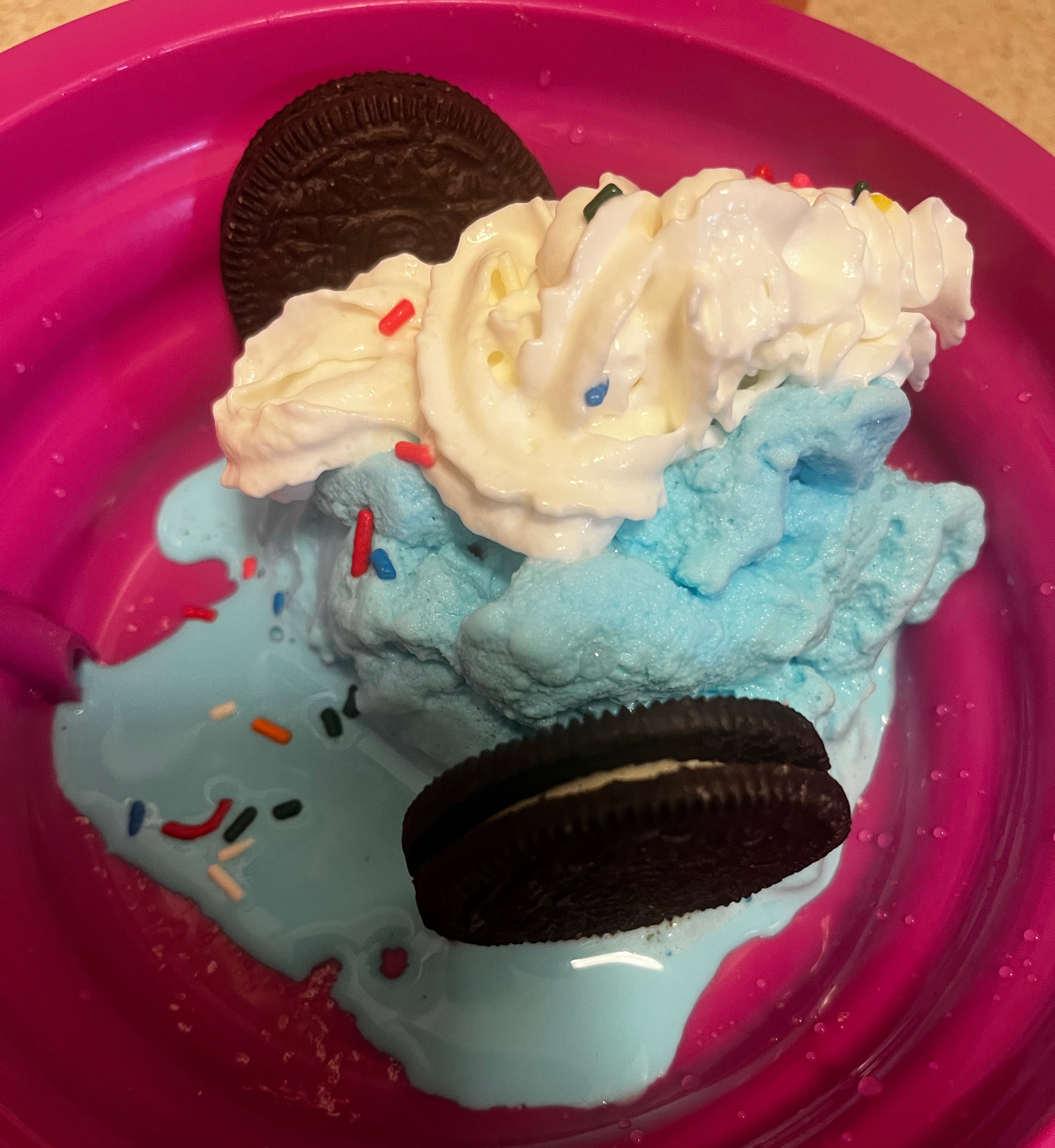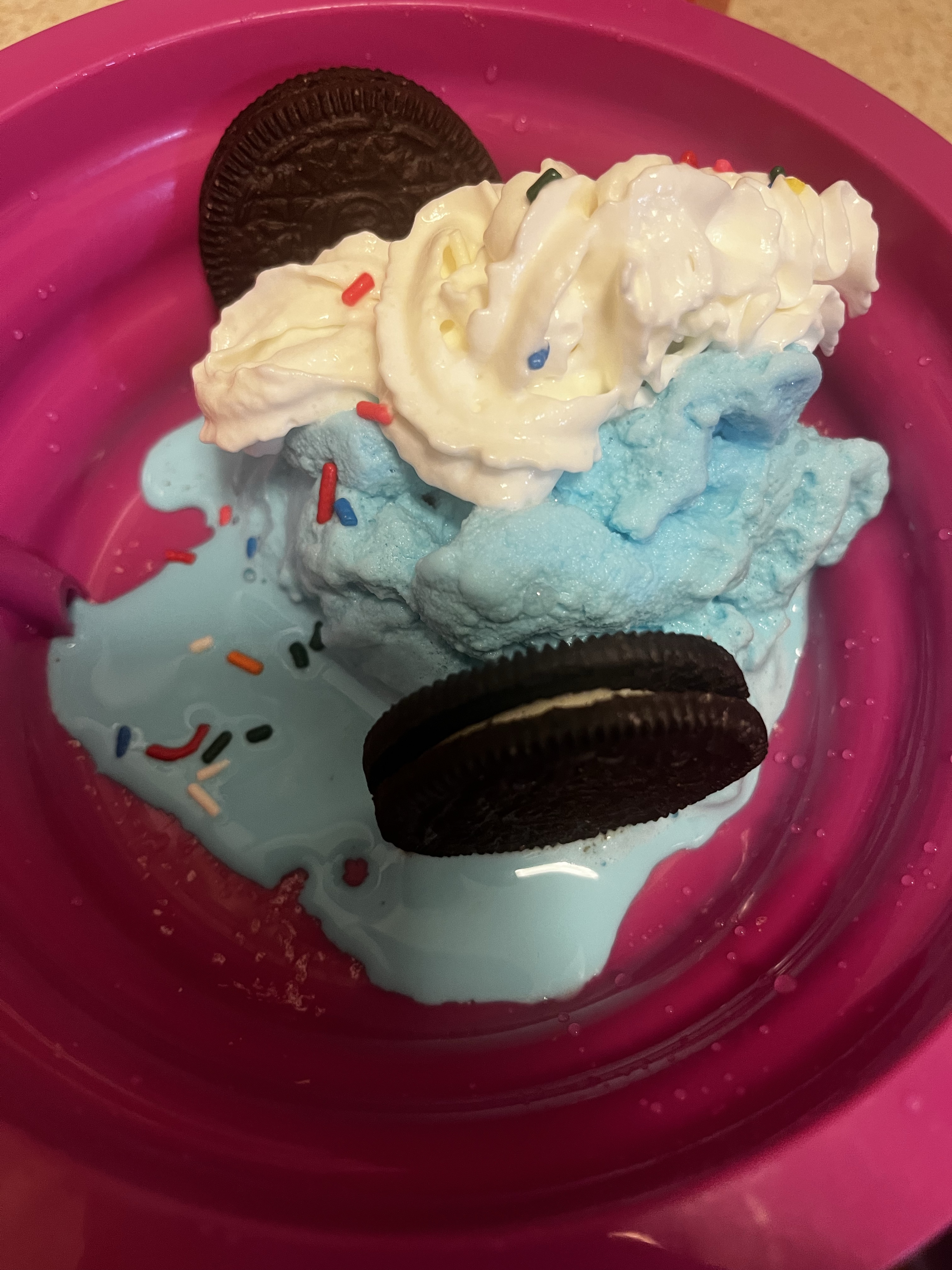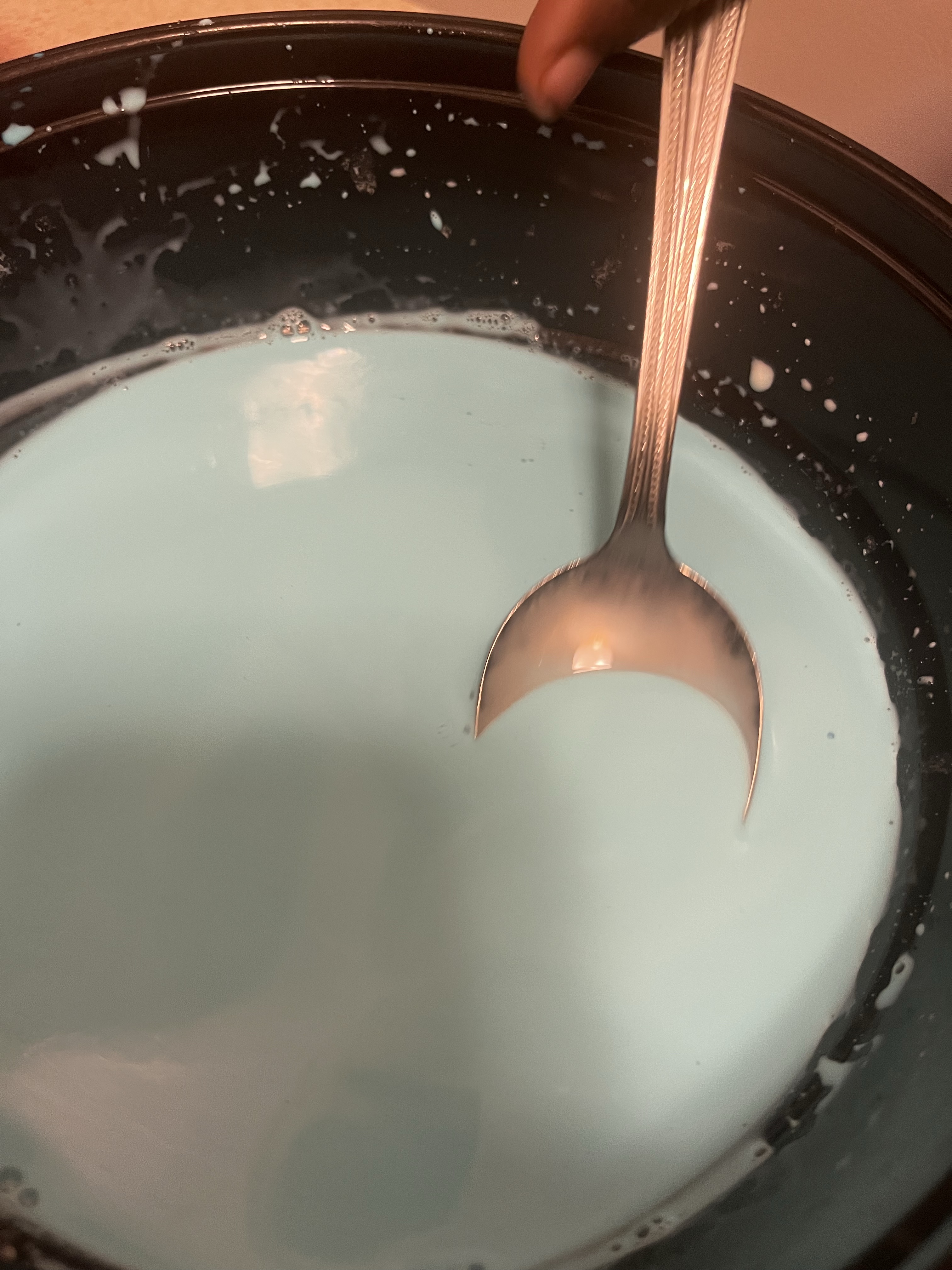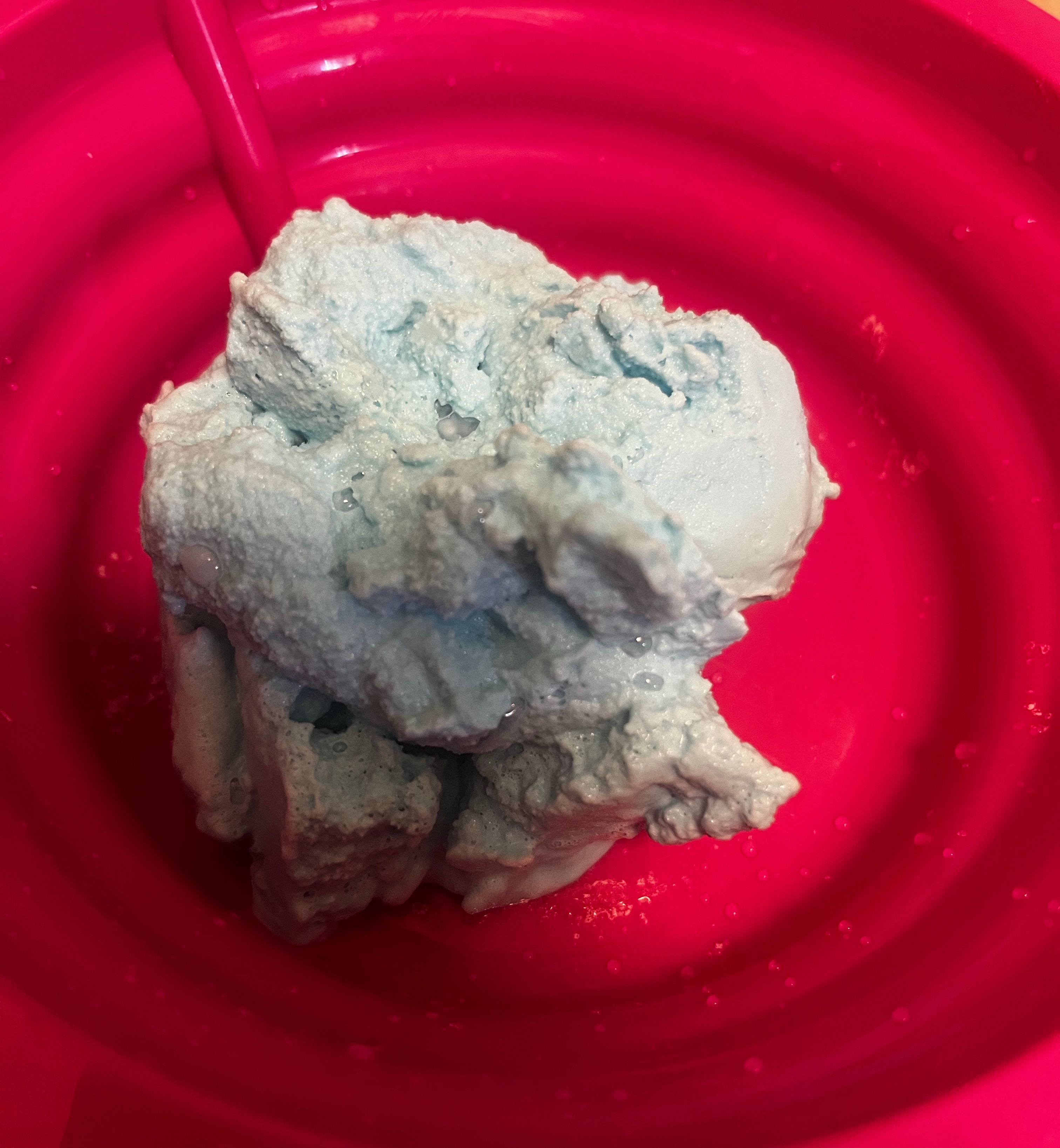 Then we added some food coloring (Blue). There’s no actual blueberries in this recipe, but in the future, we will try it.