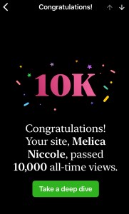 I made it past 10,000 views on my website (https://melicaniccole.com). Recently, I made this accomplishment without having a goal set in mind. Now that I know, I will set future goals to accomplish