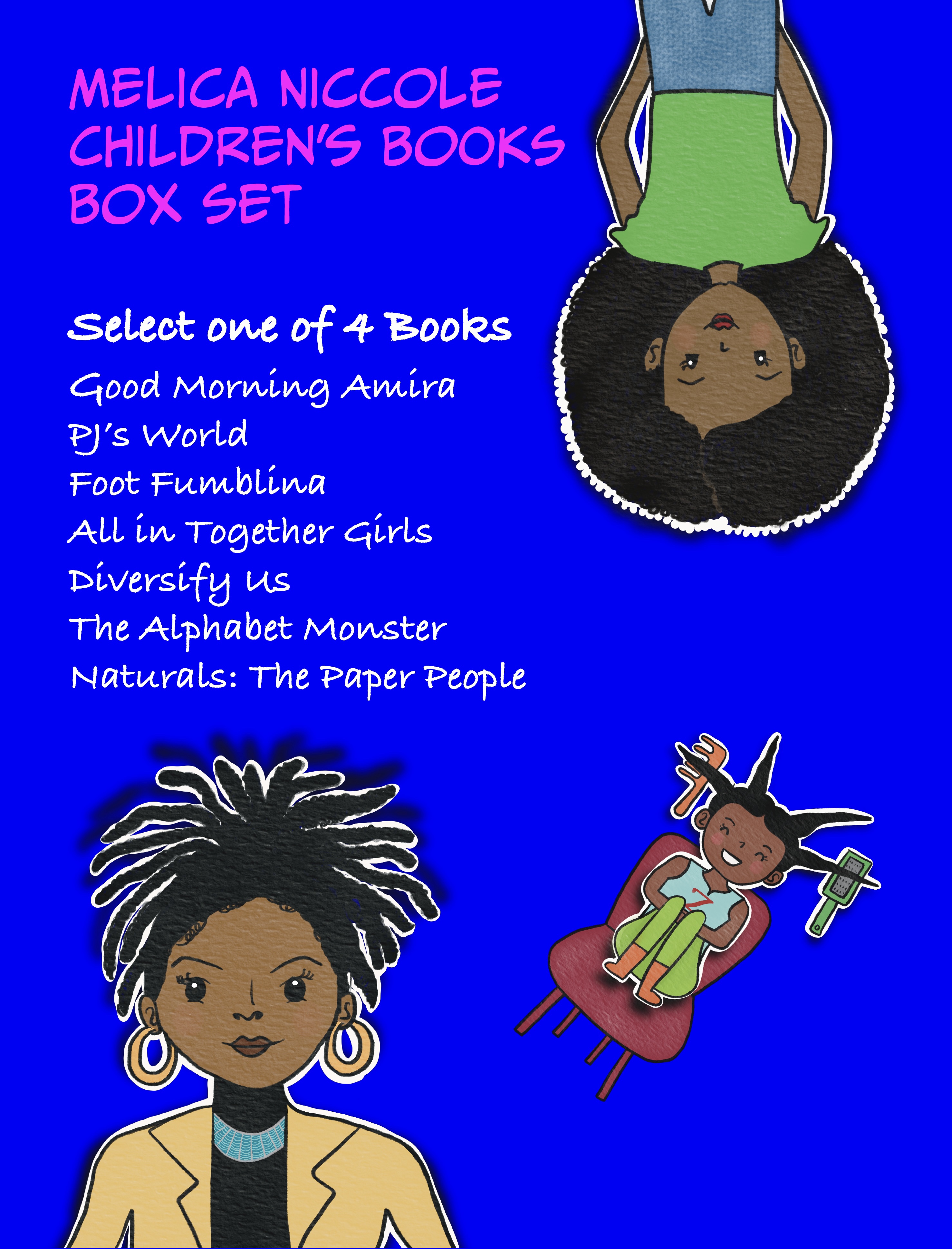 Book subscriptions are also available. You can send your child, a friend, or multiple people one new children’s book a month for seven months. Books focus on natural hair, shapes, traditions, overcoming adversity, family, teamwork, diversity, and more. Prices for box set and subscription includes shipping.